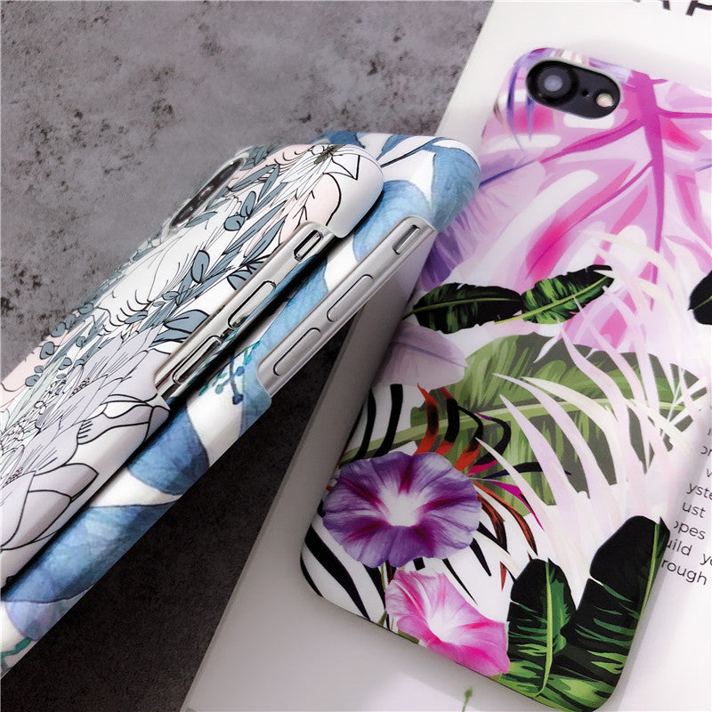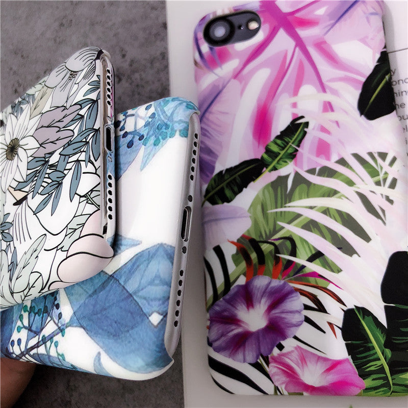 White leaf oil painting morning glory flower phone case