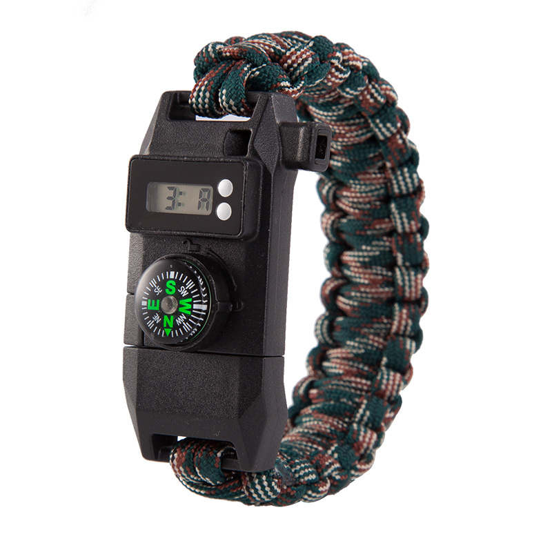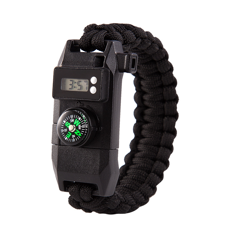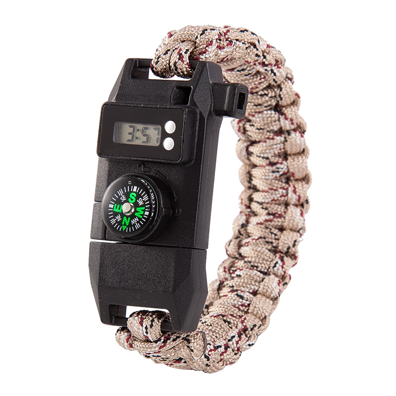 Features: climbing rope watch compass fire